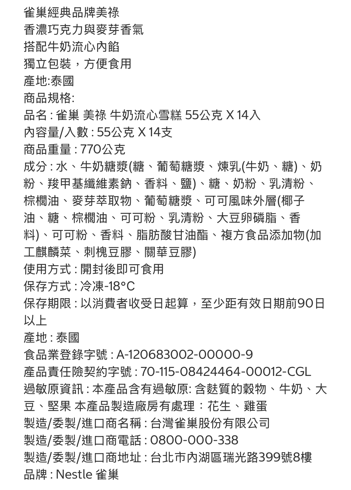 好市多代購/雀巢 美祿 牛奶流心雪糕55公克 X14入#351256