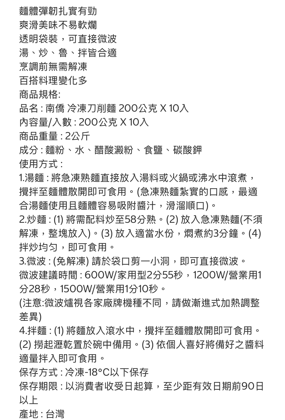 好市多代購/南僑冷凍刀削麵200公克 X10入#157737