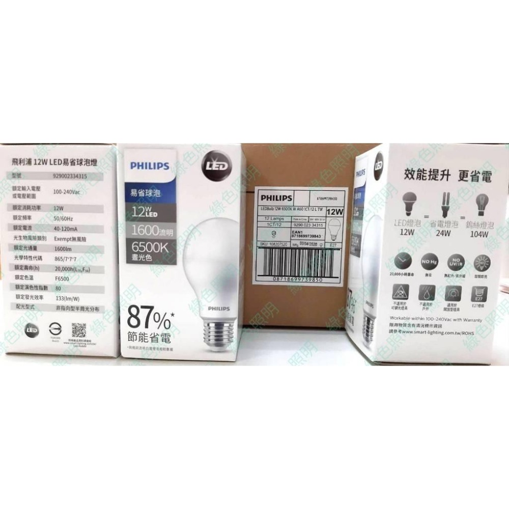 綠色照明 ☆ PHILIPS ☆ 易省 12W LED球泡燈 E27