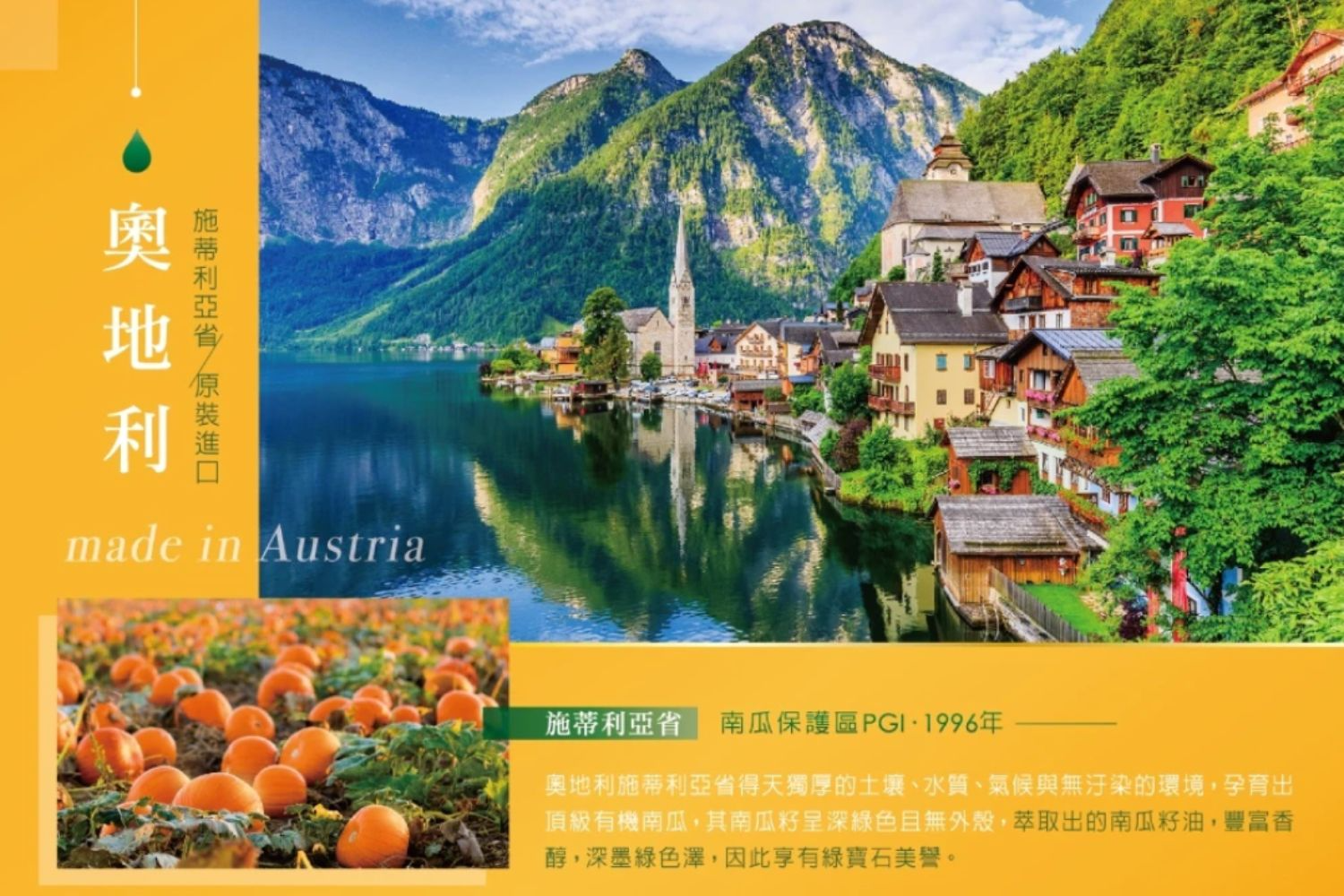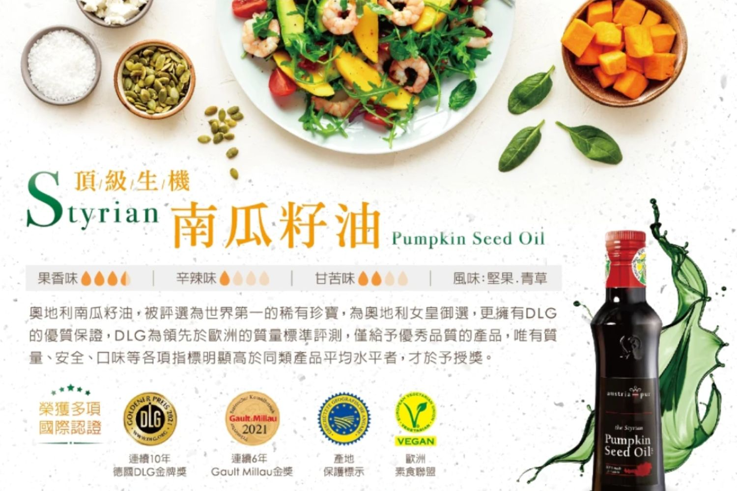 產地嚴選:來自奧地利 Styria 南瓜籽保護區(PGI 認證)