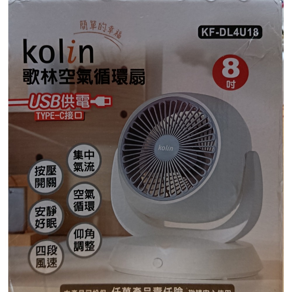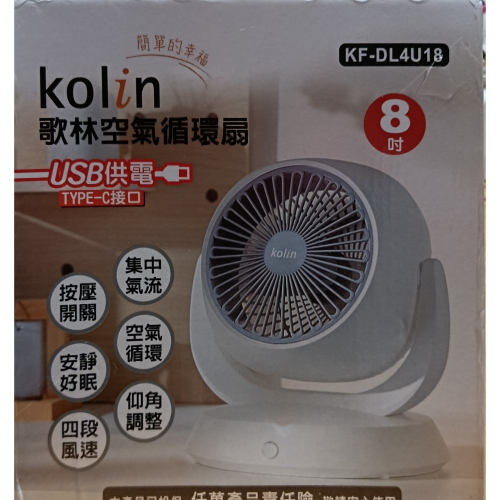 kolin歌林USB插電式8吋空氣循環 扇 體積小風力強(4段風速),可210度上下風向調整。淨化空氣,感覺更清新。
