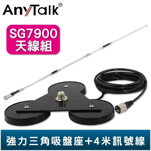 AnyTalk【強力三角吸盤座 含4米訊號線+SG7900】對講機 車機 車用 天線座 磁吸天線座 車隊 天線 組合