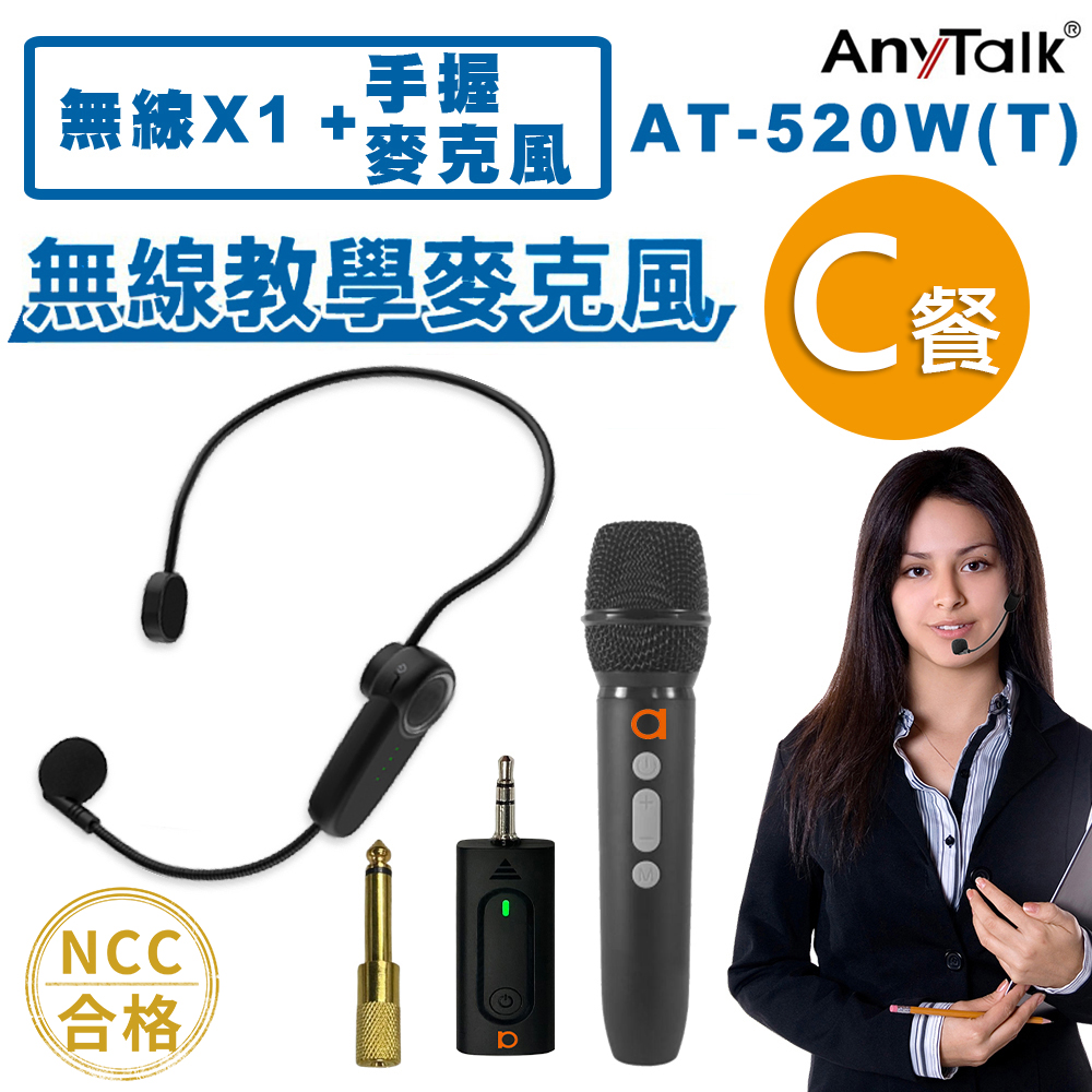 【AnyTalk】AT-520W-T 一對二 無線教學麥克風 一對一 無線麥克風 手握麥克風 導覽 導遊