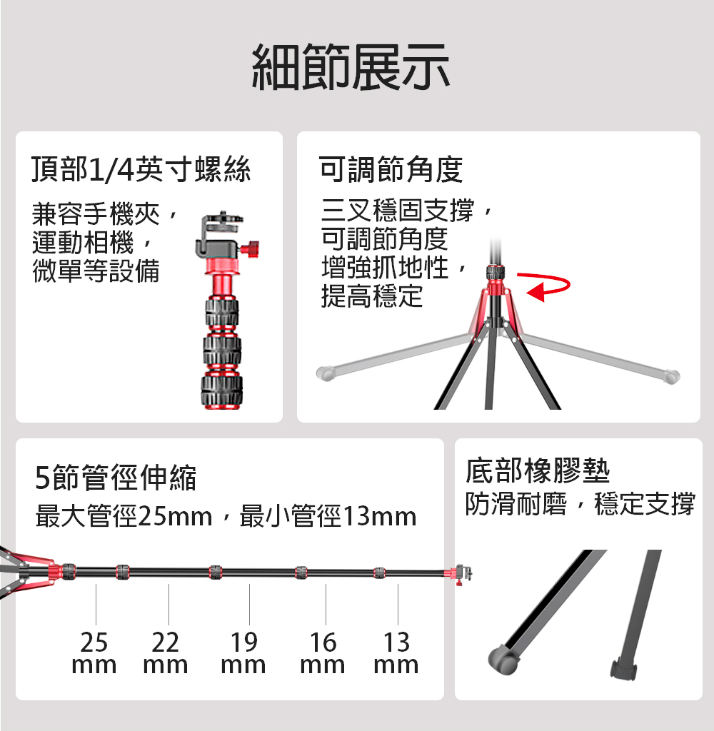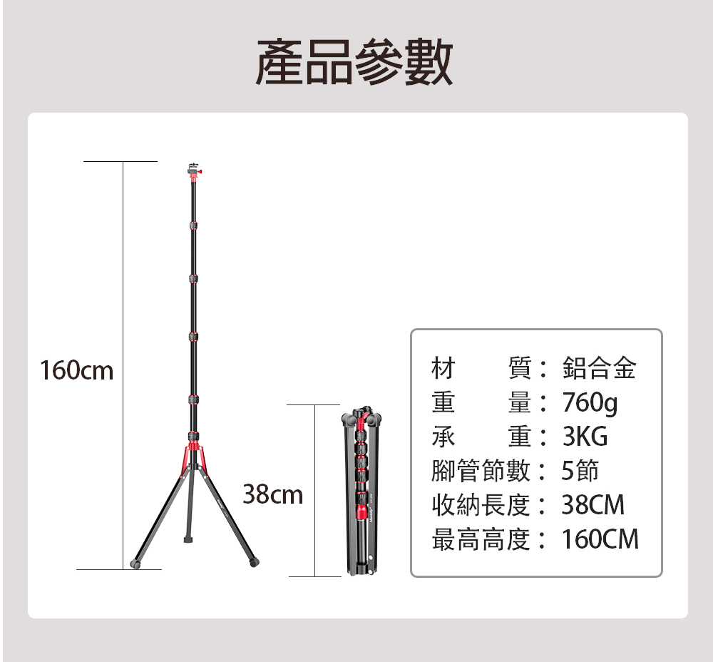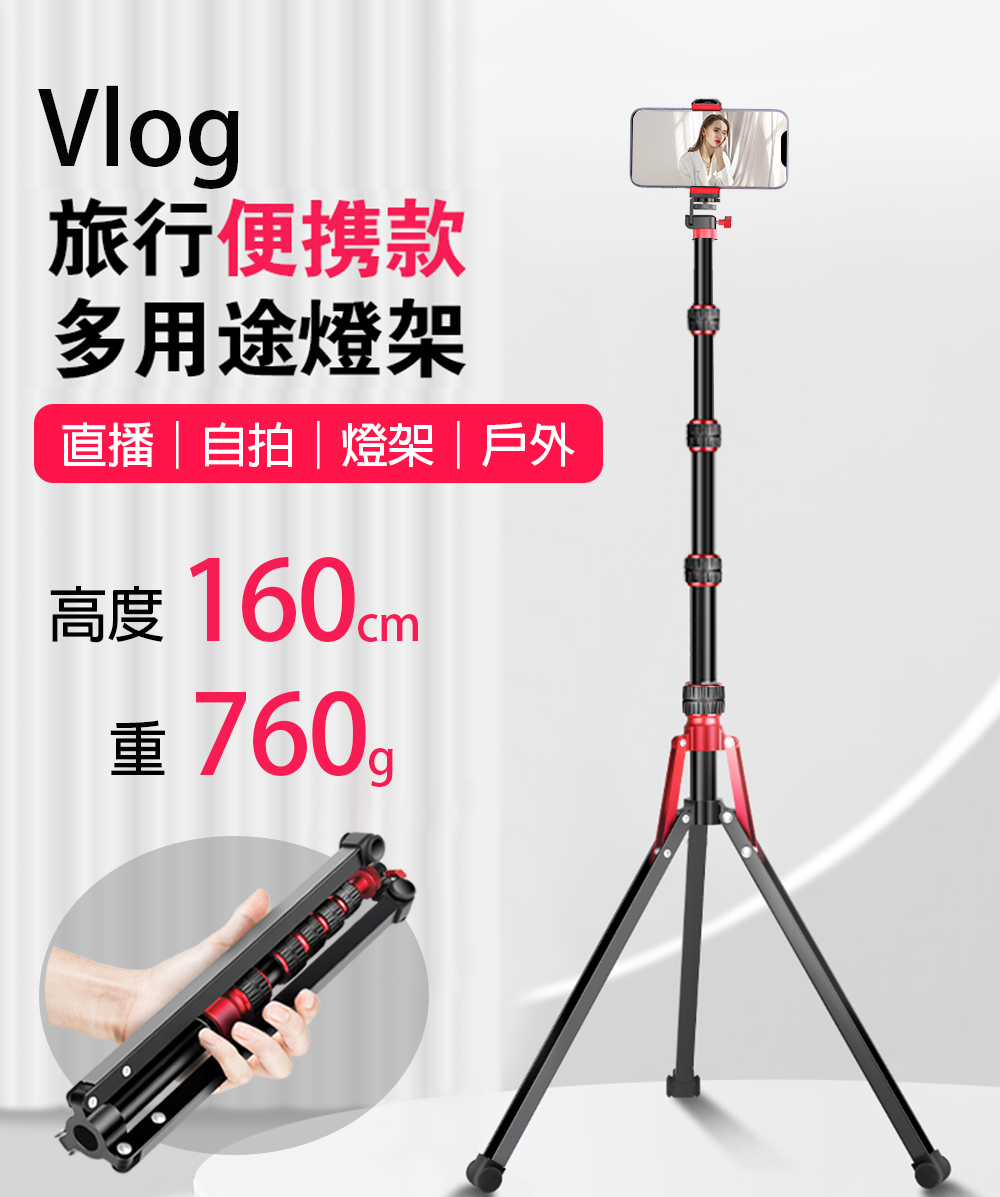 【曼比利】LH-25S 160cm 三腳架 旅行便攜款 多用途燈架 直播燈架 自拍 戶外 VLOG 鋁合金 反摺腳架