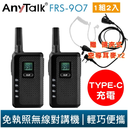 【AnyTalk】FRS-907 免執照 無線對講機 一組兩入 贈耳麥 TYPE-C充電 99頻道