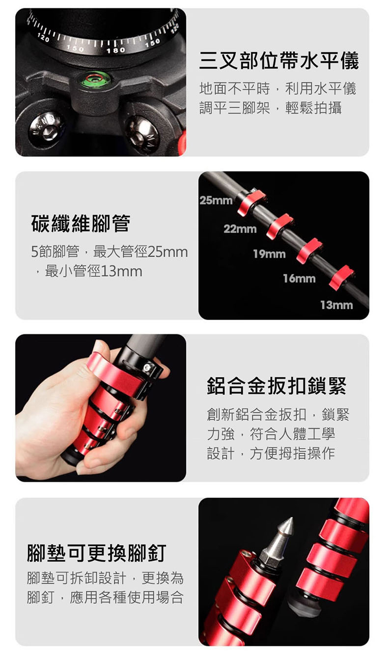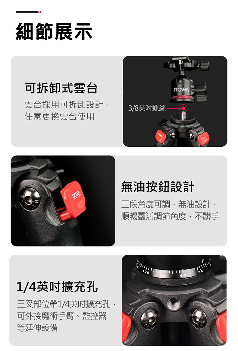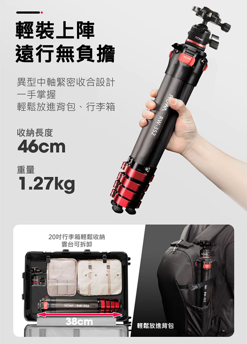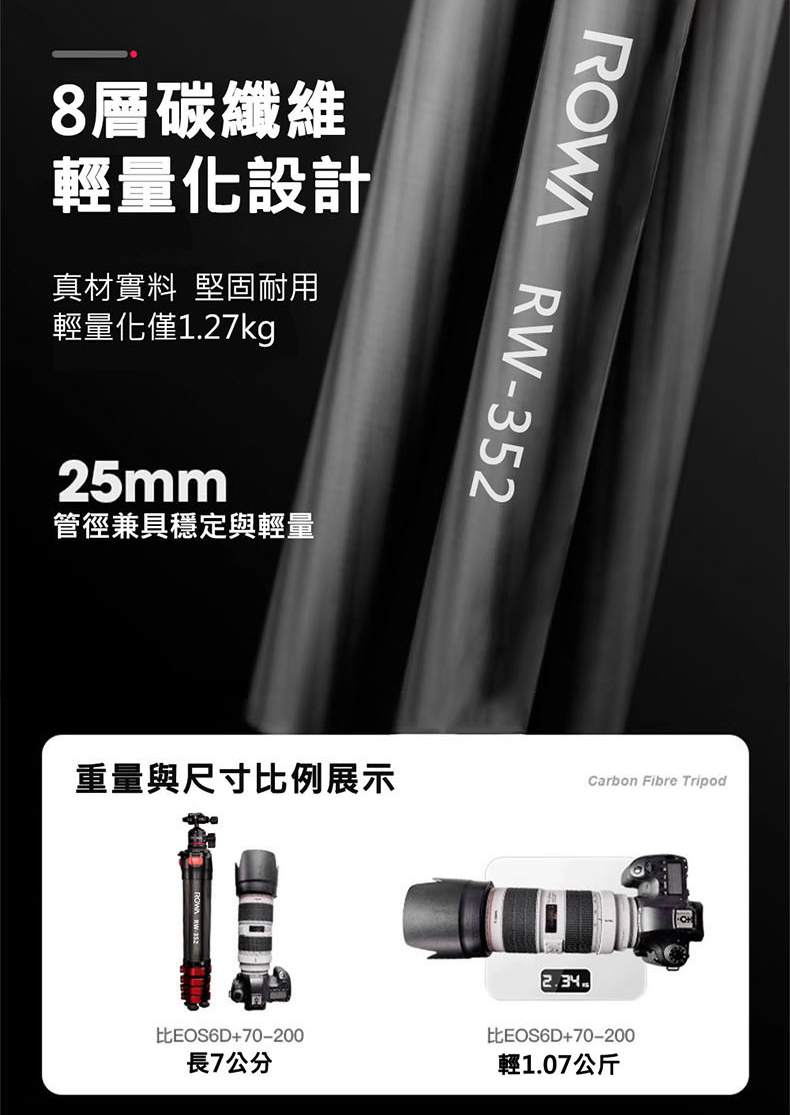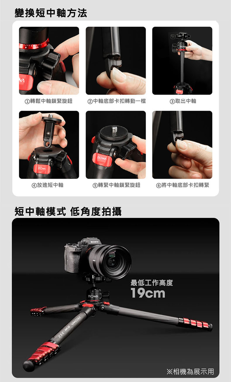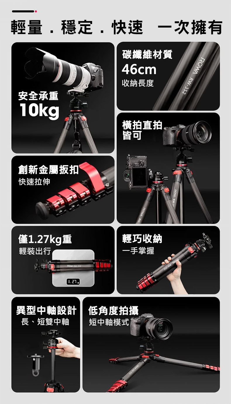 【ROWA 樂華】RW-352 碳纖維扣板三腳架 碳纖維腳架 相機腳架 攝影腳架 專業三腳架 低角度 承重10kg