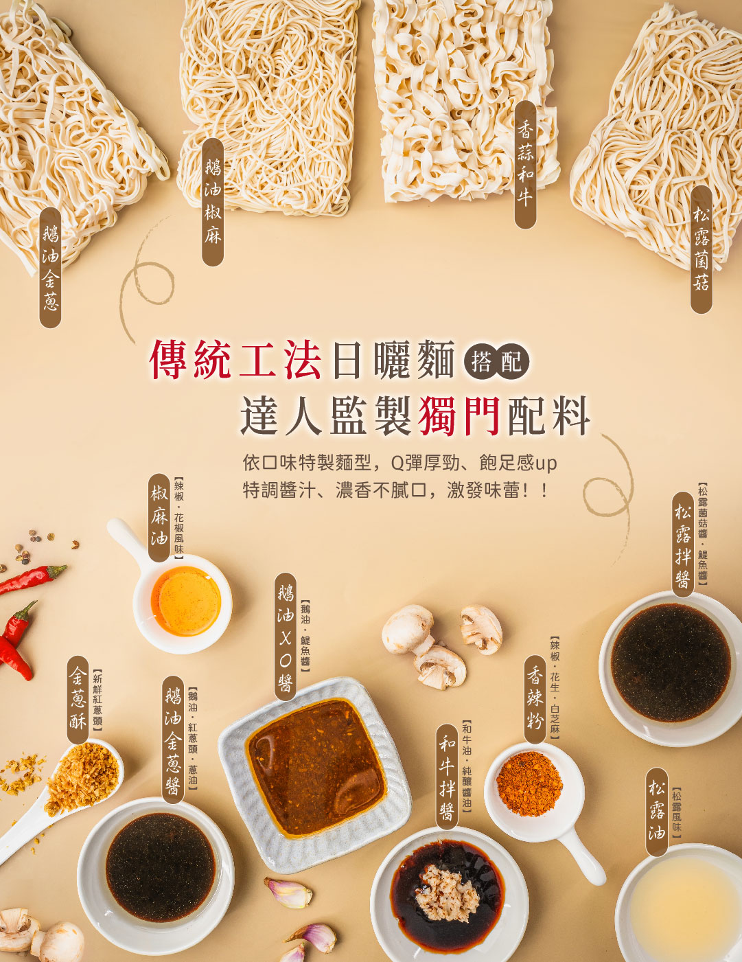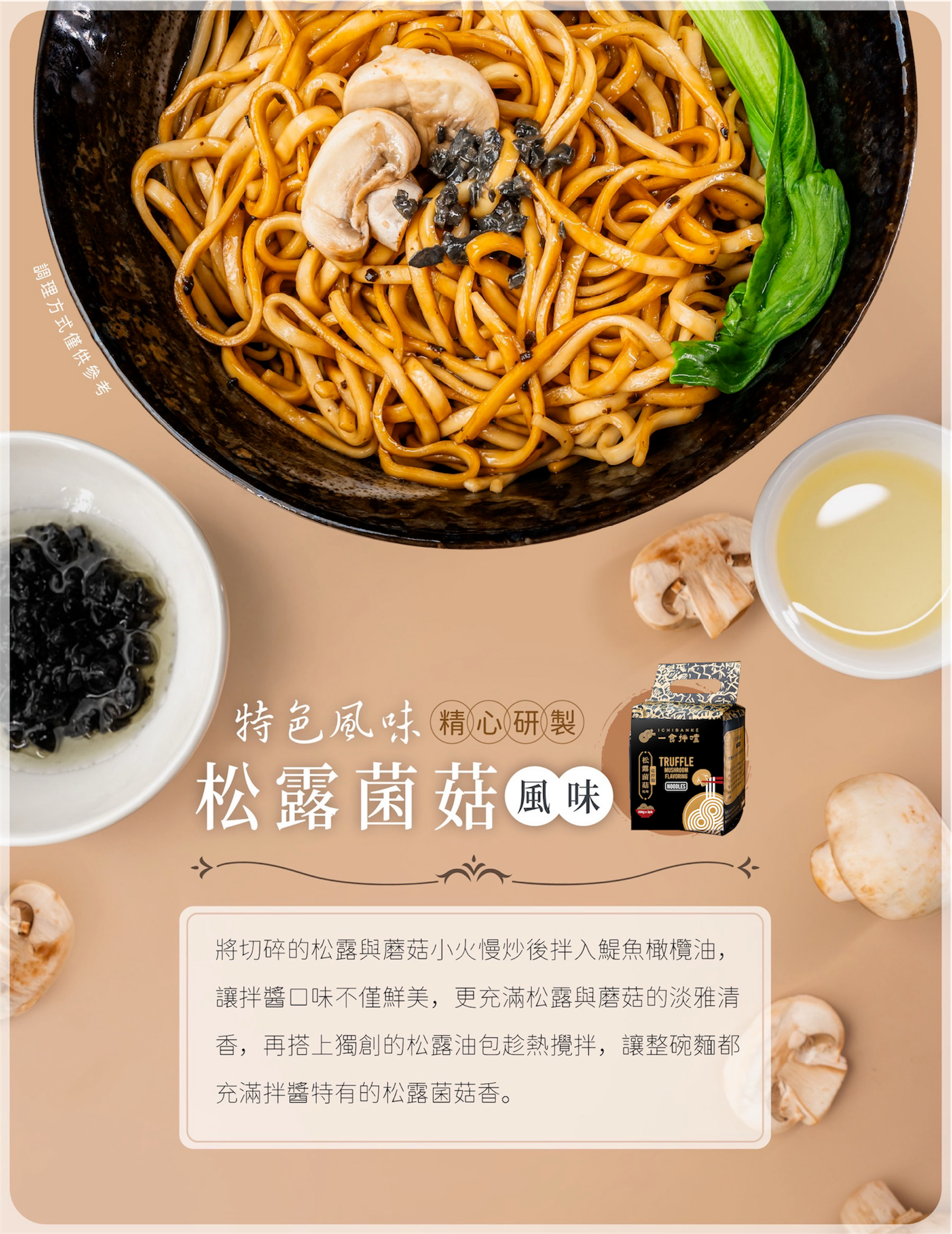 - 松露菌菇: 法式黑松露與蘑菇小火慢炒,搭配特製松露油包,讓奢華香氣在麵條間緩緩升華。