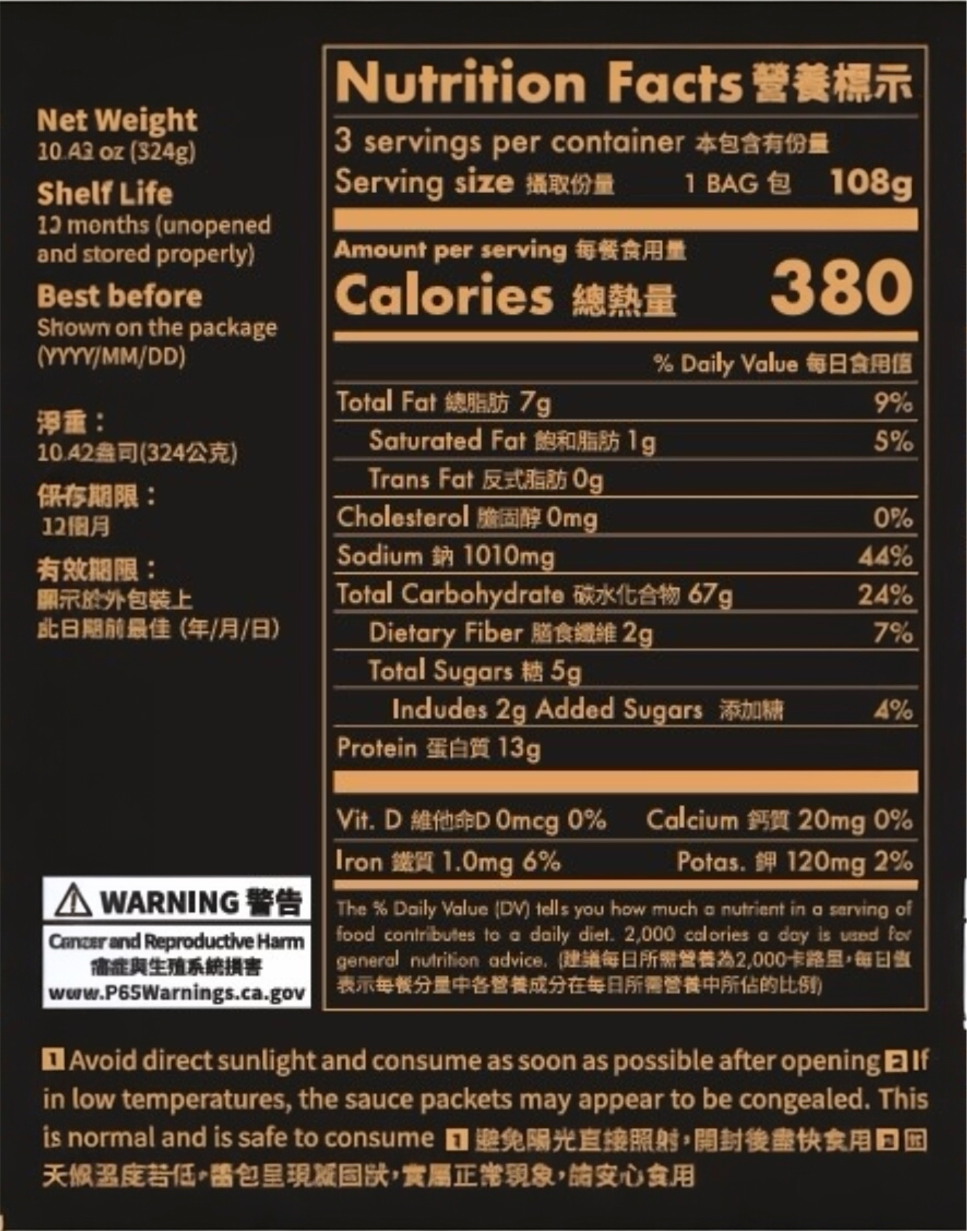 - 剩餘保存期限 : 以包裝上標示為主